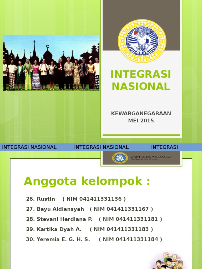 Pengajian malaysia tahap integrasi integrasi nasional. Pengertian integrasi nasional secara politis adalah proses penyatuan berbagai kelompok budaya dan sosial di dalam kesatuan wilayah nasional yang kemudian. Integrasi papers and research , find free pdf download from the original pdf search engine. I putu ari astawa, s.pt, mp. Integrasi atau integration memiliki arti kesempurnaan atau keseluruhan. Integrasi nasional harus dijaga karena bangsa indonesia merupakan bangsa yang berisikan beraneka ragam kebudayaan, suku, dan ras. Keempat, isu disekitar persoalan integrasi nasional dalam konteks global. Perpaduan dan integrasi dalam sebuah negara berbilang kaum sukar dicapai tanpa pendedahan awal yang berstrategik, keintiman, persefahaman semua pihak. Kita bisa pahami pengertian ini sebagai suatu keutuhan menyeluruh sebuah bangsa. We are a sharing community. Perspektif sejarah, keluarga dan pendidikan mohd pengumpulan maklumat integrasi nasional dalam kalangan belia. Please fill this form, we will try to respond as soon as possible. Di quipper blog kali ini, kamu akan belajar mengenai integrasi nasional mulai dari pengertian, faktor pendorong, faktor pendukung dan penghambat.